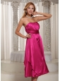 Hot Pink Ruched Bodice Tea-length Simple Mother Of The Bride Dress For Wedding Party