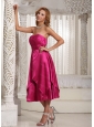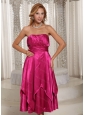 Hot Pink Ruched Tea-length 2013 Dama Dress On Sale