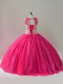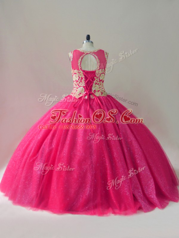 Hot Pink Sleeveless Appliques Floor Length Quinceanera Gown