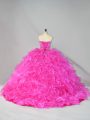 Hot Pink Sleeveless Court Train Beading and Ruffles Quinceanera Gowns