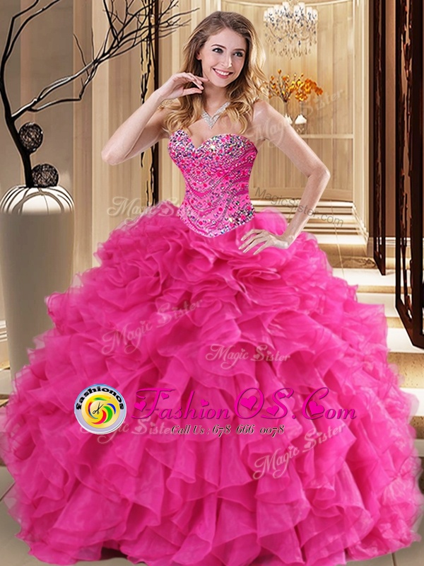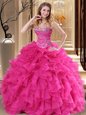 Home >  Quinceanera Dresses >  Cheap Quinceanera Dresses > Hot Pink Sleeveless Organza Lace Up Sweet 16 Dress for Military Ball and Sweet 16 and Quinceanera