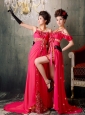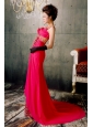 Hot Pink Spaghetti Straps Appliques With Beading Prom / Evening Dress With Court Train