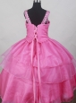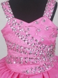 Hot Pink Straps Neckline Beaded Decorate Bodices Flower Girl Pageant Dress