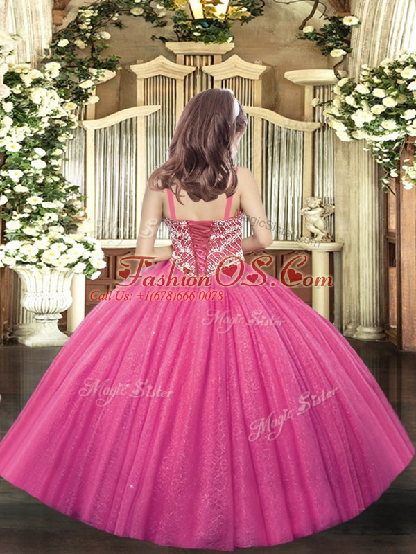 Home >  Special Occasion Dresses >  Lovely Little Girl Pageant Dresses > Hot Pink Straps Neckline Beading Kids Formal Wear Sleeveless Lace Up