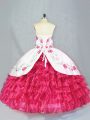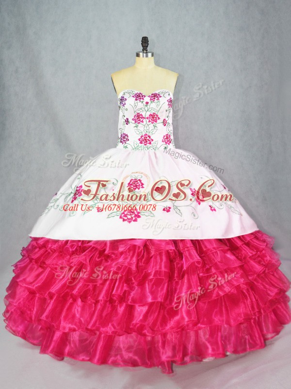 Hot Pink Sweet 16 Dresses Sweet 16 and Quinceanera with Embroidery and Ruffled Layers Sweetheart Sleeveless Lace Up