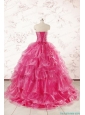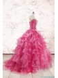 Hot Pink Sweetheart Beading Quinceanera Dresses with Brush Train