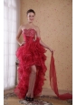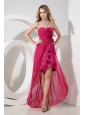 Hot Pink Sweetheart High-low  Prom Dress Chiffon and Lace Hand Made Flowers and Embroidery