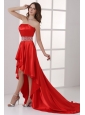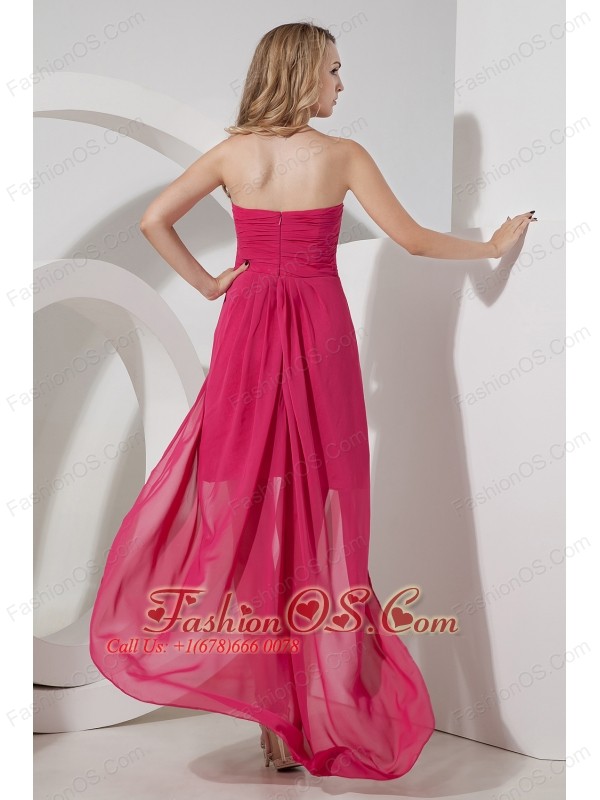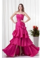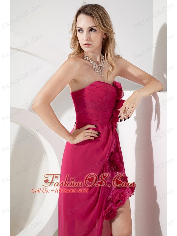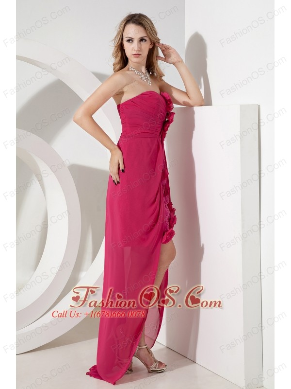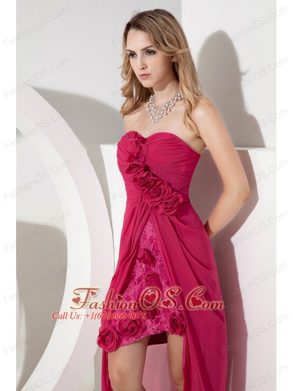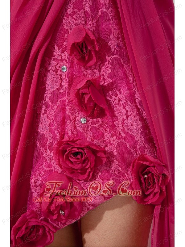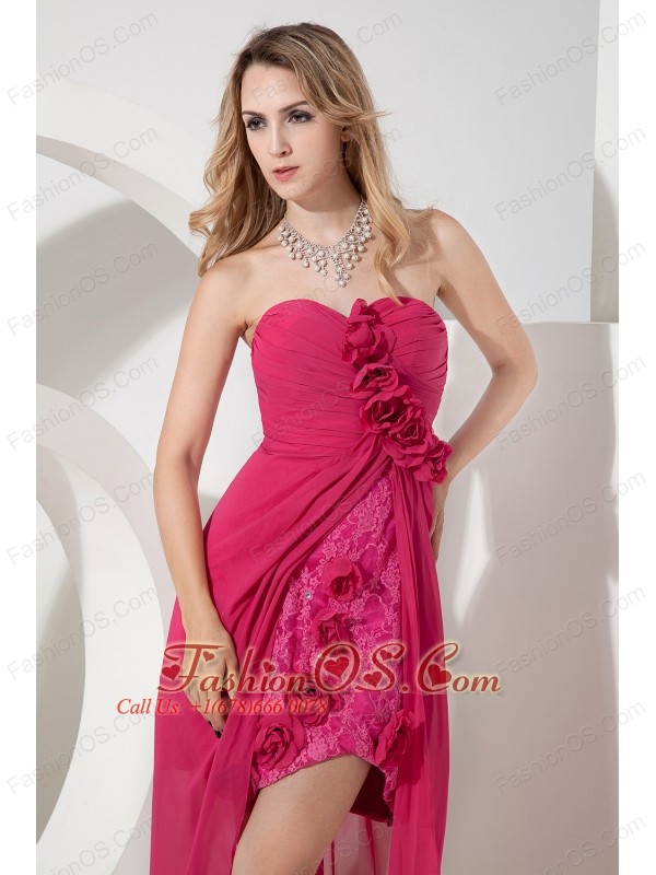 Home >  Prom Dresses >  High Low Prom Dresses > Hot Pink Sweetheart High-low Prom Dress Chiffon and Lace Hand Made Flowers and Embroidery