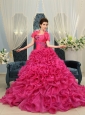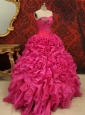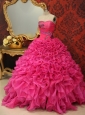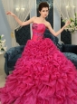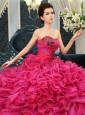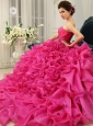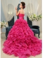 Hot Pink Sweetheart Ruffles Court Train Designer 2013 New Styles Quinceanera Dress For Custom Made