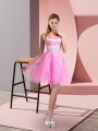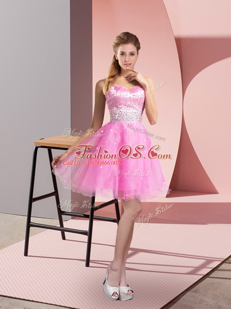 Hot Pink Tulle Zipper Sweetheart Sleeveless Mini Length Club Wear Beading