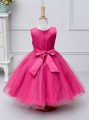 Home >  Special Occasion Dresses >  New Style Little Girl Pageant Dresses > Hot Pink Zipper Little Girls Pageant Dress Wholesale Lace and Bowknot Sleeveless Knee Length