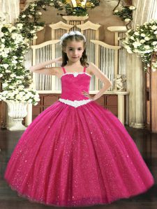 Hot Pink Zipper One Shoulder Appliques Pageant Dresses Tulle Sleeveless