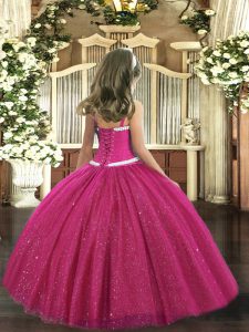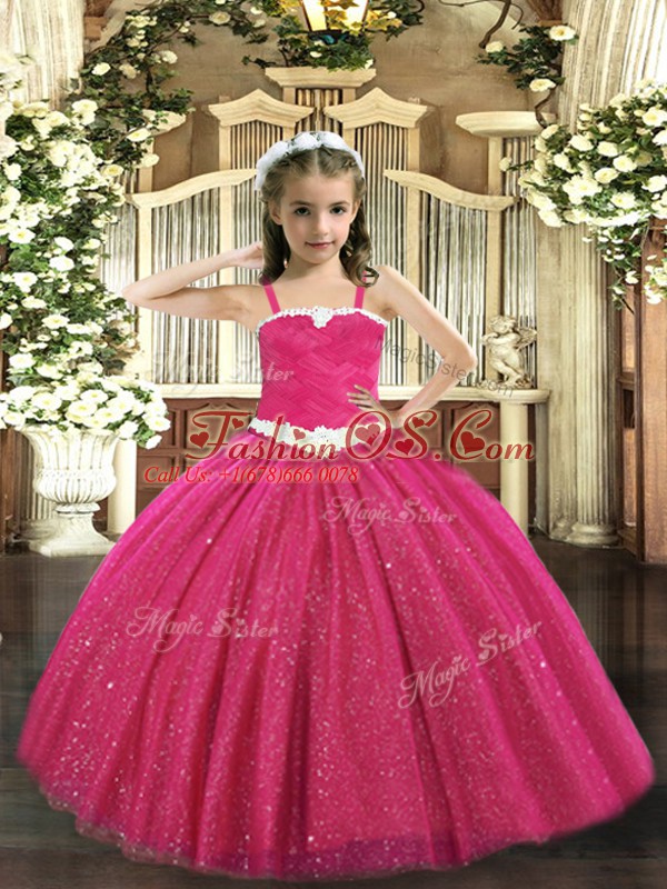 Home >  Special Occasion Dresses >  Beautiful Kids Pageant Dresses > Hot Pink Zipper One Shoulder Appliques Pageant Dresses Tulle Sleeveless