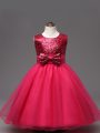 Home >  Special Occasion Dresses >  New Style Little Girl Pageant Dresses > Hot Pink Zipper Scoop Sequins and Bowknot Little Girl Pageant Gowns Organza Sleeveless
