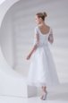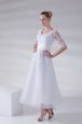 Hot Sale A-line Wedding Dresses White Scoop Tulle and Lace Sleeveless Ankle Length Lace Up