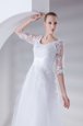 Home >  Wedding Dresses >  Low Cost Wedding Dresses > Hot Sale A-line Wedding Dresses White Scoop Tulle and Lace Sleeveless Ankle Length Lace Up