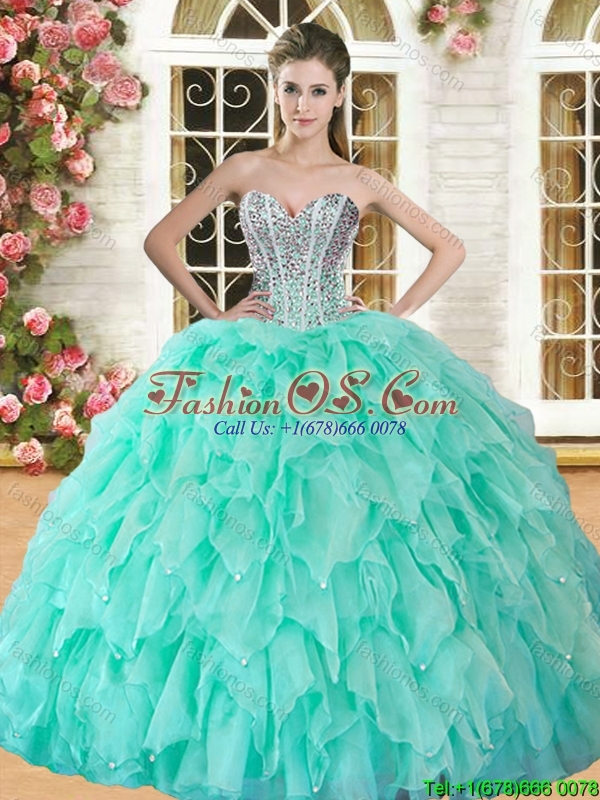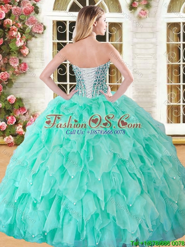 Hot Sale Apple Green Sweet 16 Dress with Beading and Ruffles