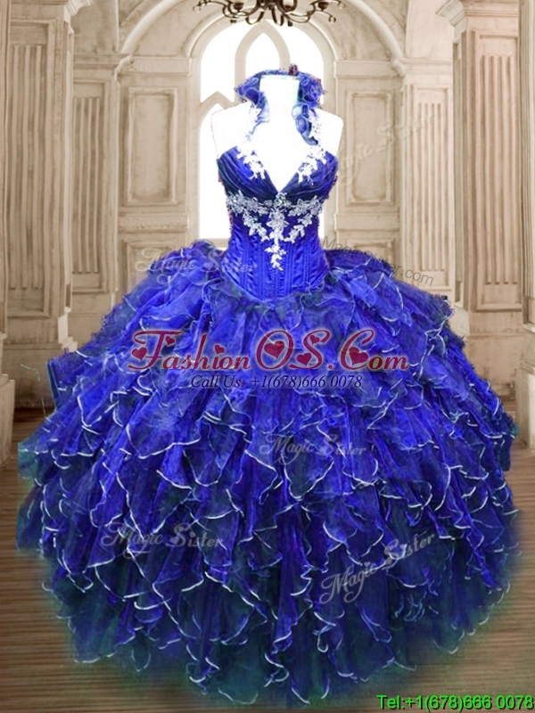 Home >  Quinceanera Dresses >  In Stock Quinceanera Dresses > Hot Sale Applique and Ruffled Quinceanera Dress in Royal Blue