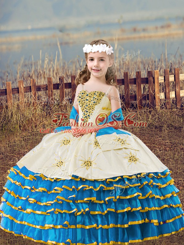 Home >  Special Occasion Dresses >  Beautiful Kids Pageant Dresses > Hot Sale Baby Blue Sleeveless Beading and Embroidery and Ruffled Layers Floor Length Pageant Dress for Girls