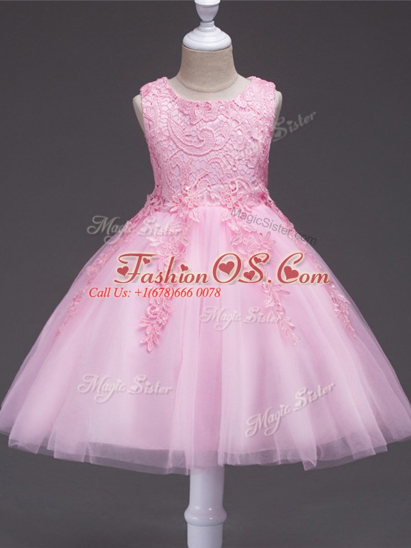 Hot Sale Baby Pink Scoop Zipper Appliques Little Girls Pageant Gowns Sleeveless