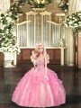 Hot Sale Baby Pink Strapless Lace Up Beading and Ruffles Quinceanera Gown Sleeveless