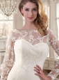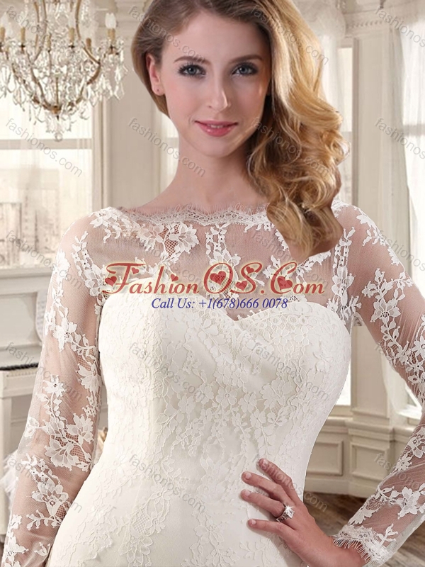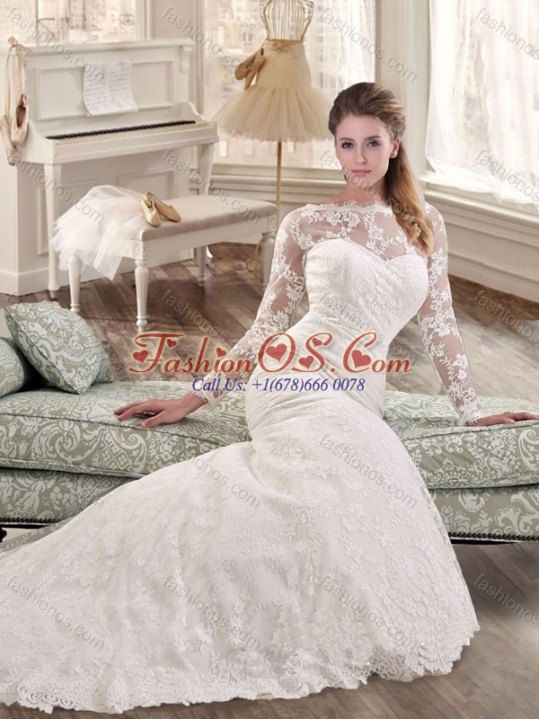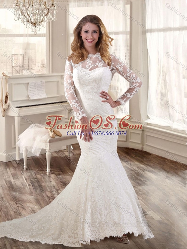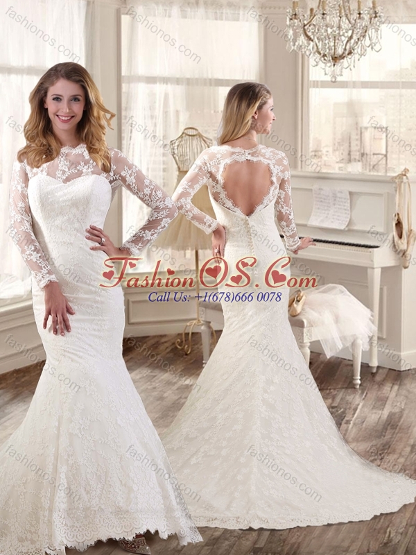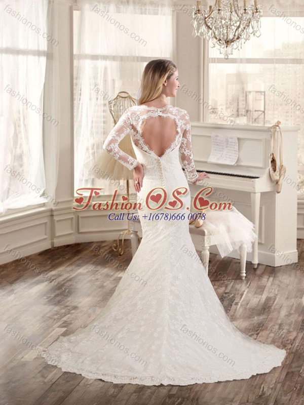 Hot Sale Bateau Open Back Wedding Dresses with Brush Train