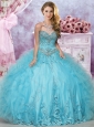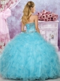 Hot Sale Beaded and Ruffled Organza Perfect Quinceanera Dress in Aqua Blue