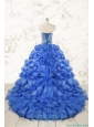 Hot Sale Beading Royal Blue Sweet 15 Dresses with Sweep Train