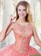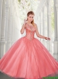 Hot Sale Beading Scoop Quinceanera Gowns in Watermelon
