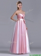Hot Sale Bowknot Strapless White and Pink Dama Dress with Side Zipper