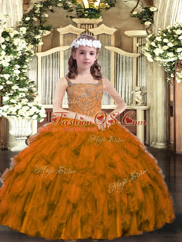Home >  Special Occasion Dresses >  Beautiful Kids Pageant Dresses > Hot Sale Brown Sleeveless Organza Lace Up Pageant Dress Womens for Sweet 16 and Quinceanera