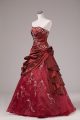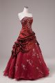 Home >  Quinceanera Dresses >  Custom Made Quinceanera Dresses > Hot Sale Burgundy Lace Up 15th Birthday Dress Beading and Embroidery Sleeveless Floor Length