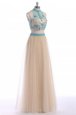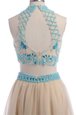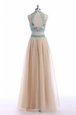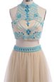 Hot Sale Empire Prom Gown Champagne High-neck Tulle Sleeveless Floor Length Zipper