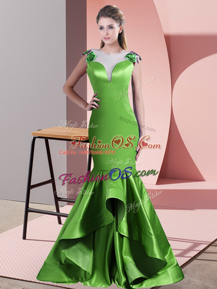 Hot Sale Green Scoop Side Zipper Beading and Lace and Appliques Prom Evening Gown Sweep Train Sleeveless