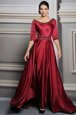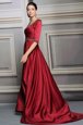 Home >  Prom Dresses >  Beautiful Prom Dresses > Hot Sale Half Sleeves Brush Train Zipper Beading and Belt Prom Party Dress
