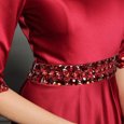 Hot Sale Half Sleeves Brush Train Zipper Beading and Belt Prom Party Dress