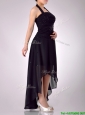 Hot Sale Halter Top High Low High Low Bridesmaid Dress with Beading