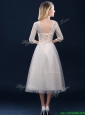 Hot Sale Laced and Applique Champagne Prom Dresses in Tea Length