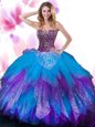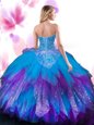 Hot Sale Multi-color Lace Up Sweetheart Beading and Ruffled Layers Quinceanera Gowns Tulle Sleeveless