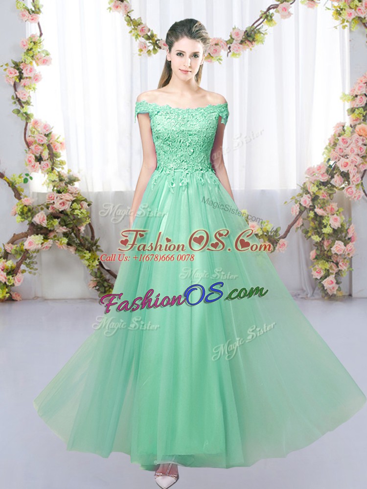 Hot Sale Off The Shoulder Sleeveless Lace Up Wedding Party Dress Apple Green Tulle