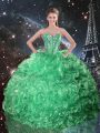 Hot Sale Organza Sweetheart Sleeveless Lace Up Beading and Ruffles Quince Ball Gowns in Green