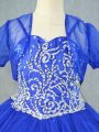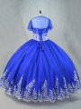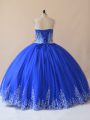 Hot Sale Royal Blue Sweetheart Lace Up Embroidery 15 Quinceanera Dress Sleeveless