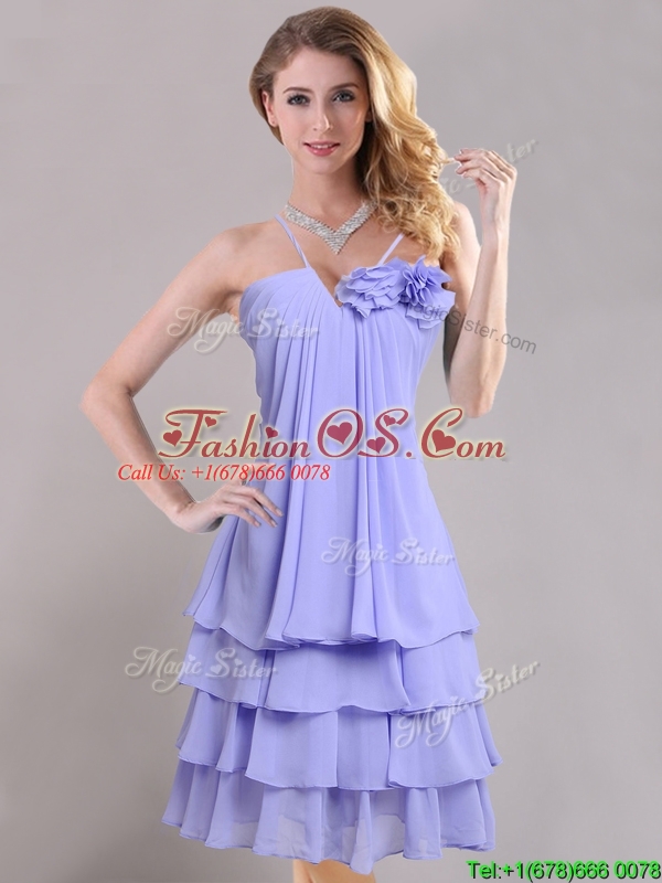 Home >  Bridesmaid Dresses >  Cheap Bridesmaid Dresses > Hot Sale Ruffled Layers and Handcrafted Flower Bridesmaid Dress in Lavender