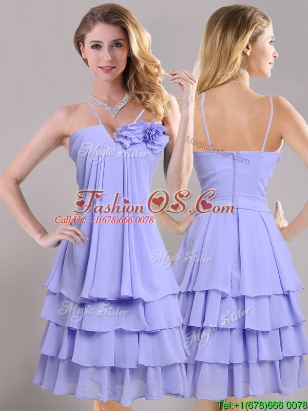 Hot Sale Ruffled Layers and Handcrafted Flower Bridesmaid Dress in Lavender