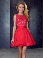 Home >  Special Occasion Dresses >  Cocktail Dresses > Hot Sale Scoop Backless Red Prom Dress with Appliques and Belt