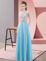 Hot Sale Scoop Sleeveless Backless Prom Dresses Baby Blue Satin