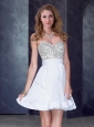 Hot Sale Short Sweetheart White Junior Prom Dress with Beading in Organza