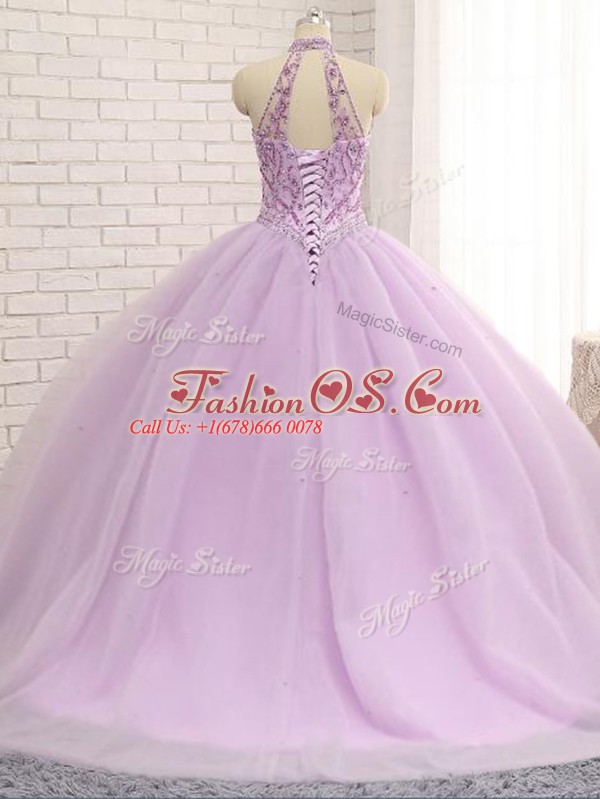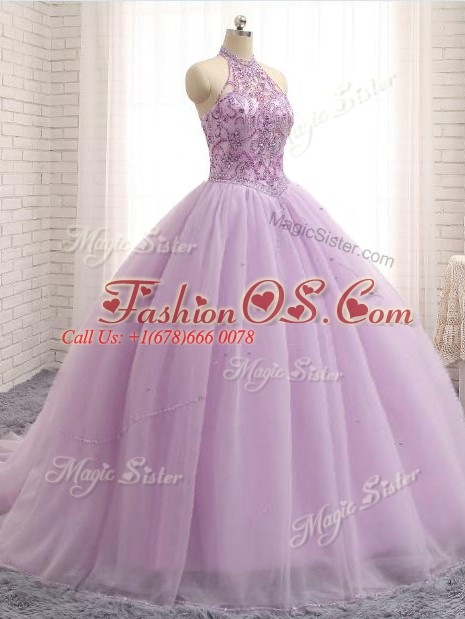 Hot Sale Sleeveless Brush Train Beading Lace Up Sweet 16 Dresses
