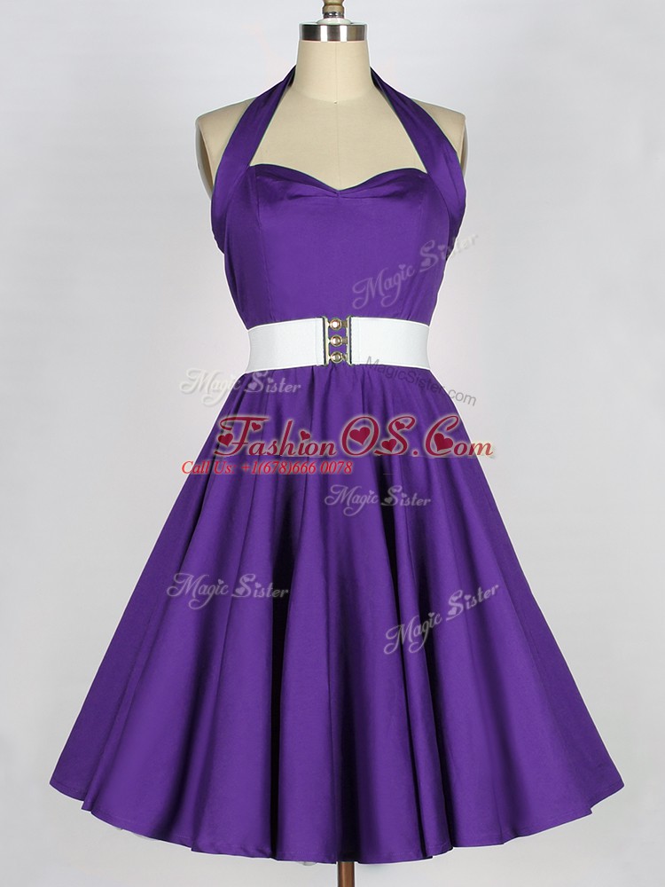Home >  Special Occasion Dresses >  Discount Dama Dresses > Hot Sale Sleeveless Taffeta Knee Length Zipper Court Dresses for Sweet 16 in Purple with Ruching