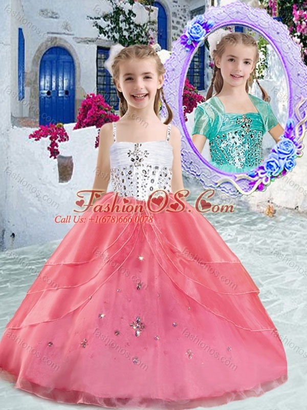 Hot Sale Spaghetti Straps Ball Gown Beading Little Girl Pageant Dresses
